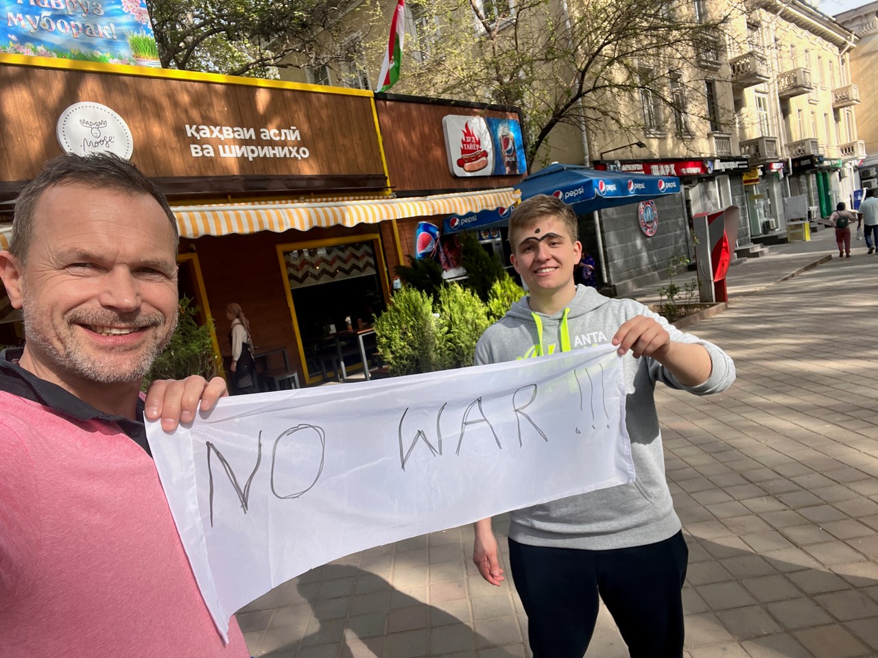 Na powrót do Uzbekistanu umówiłem się z moim kierowcą na godzinę 12:00 więc rano pierwszym zadaniem było wykonanie zaplanowanego zdjęcia. Muszę się przyznać, że nie podzieliłem się tym pomysłem z żoną ani z dziećmi, żeby ich niepotrzebnie nie denerwować i miałem rację. Opis tej akcji i to feralne zdjęcie publikuję też dziś na spokojnie, po powrocie do kraju, ponieważ całe wydarzenie napędziło mi dużego stracha i podczas robienia kolejnych zdjęć z napisem „NO WAR” (a zrobiłem je jeszcze w Uzbekistanie, Kazachstanie, Estonii, Finlandii i na Łotwie) miałem się już na baczności. A jak to było już wam opowiadam.