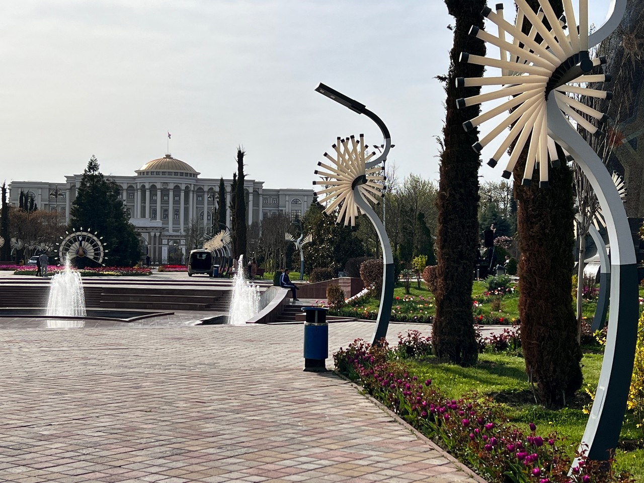 Po takim starcie byłem gotowy na zwiedzanie. Główną ulicą miasta jest Rudaki, która nosząc oznaczenie M41, stanowi część słynnej Szosy Pamirskiej. Jest pełna stoisk, kawiarni i sklepów a jej największymi atrakcjami są monumentalne budynki rządowe i otaczające je ogrody i parki (np. Park Rudake) z rzeką, jeziorami i fontannami. Zwiedzając stolicę nie można pominąć pozłacanego monumentu Ismoila Somoniego, który był tadżyckim władcą z IX wieku a którego nazwisko służy nazwie obecnej waluty. Współczesnemu prezydentowi wybudowano ogromny pałac i zadbano, aby głowa państwa miała odpowiedni widok z okna. W tym celu specjalnie wyburzono synagogę, która wcześniej stała w tym miejscu odsłaniając panoramę pobliskich gór.