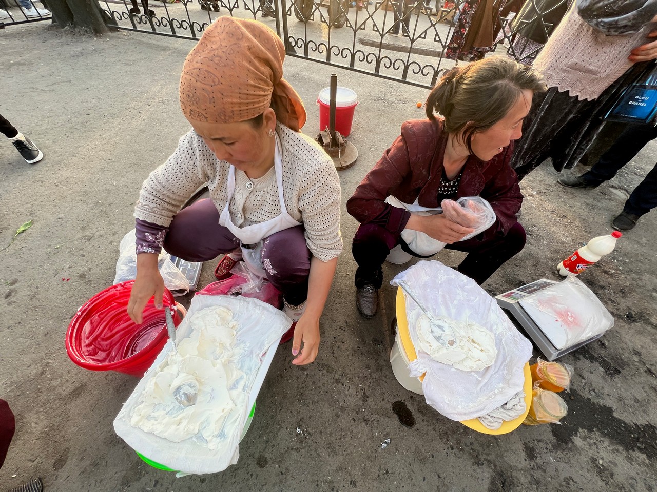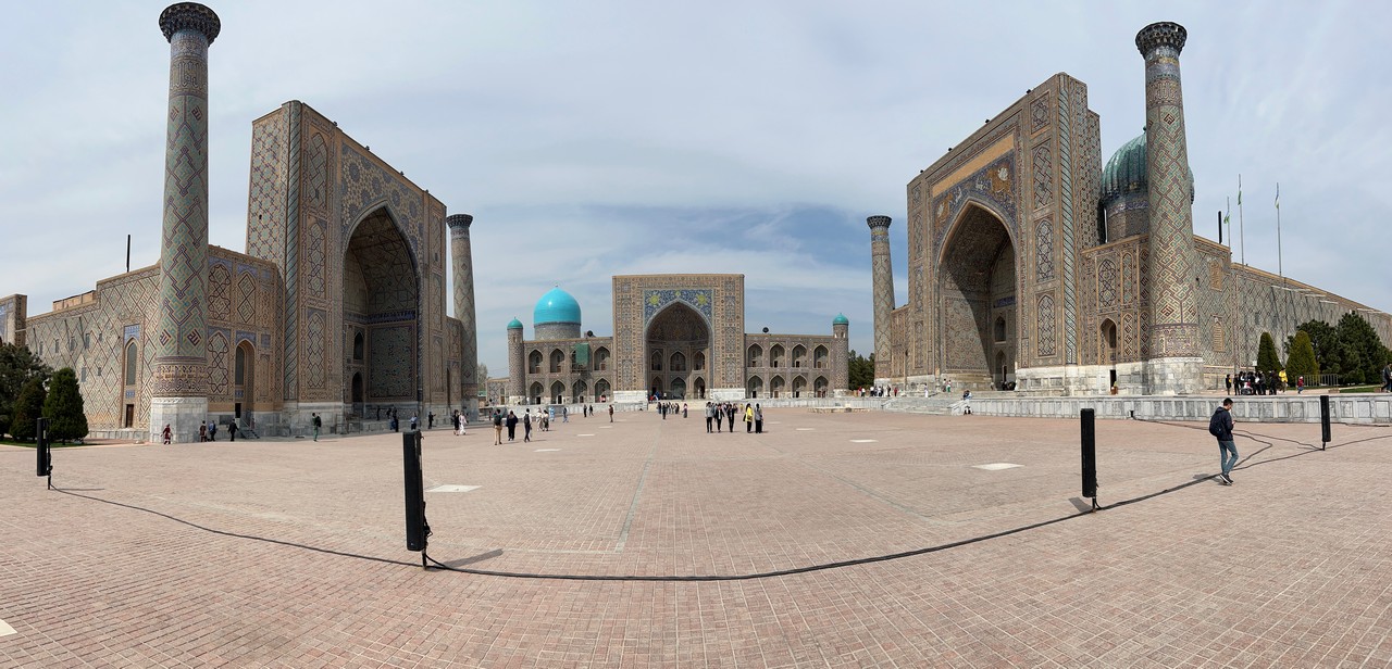 Obudziłem się w południe i w domu nie było już nikogo. Zgodnie z instrukcją Bozorboja zatrzasnąłem za sobą drzwi i ruszyłem na podbój miasta. Pierwszy cel był oczywisty: plac Registan i jego trzy muzułmańskie szkoły. Wcześniej musiałem tylko zjeść śniadanie i jakoś dojechać do centrum. Z jednym i z drugim poszło bez problemu. Spod domu dowiózł mnie do centrum miasta tramwaj z biletem za 30 groszy a śniadanie zjadłem na bazarze Siyob Dehqon, znajdującym się na tyłach meczetu Bibi-Khanym z przełomu XIV i XV wieku. Kupiłem dwa duże pierogi, które okazały się somsami – typowym tu daniem. Były wypełnione szpinakiem, upieczone w piecu tandoor i tak dobre, że dokupiłem jeszcze dwie. Popiłem pół litrem ręcznie wyciśniętego przede mną soku z granatów za 4 złote i po takiej uczcie byłem gotów na zwiedzanie. Fasada meczetu Bibi-Khanym przypominała do złudzenia madrasy z placu Registan, tylko że tych madras miały być trzy a ja stałem na przeciwko jednej wielkiej budowli.