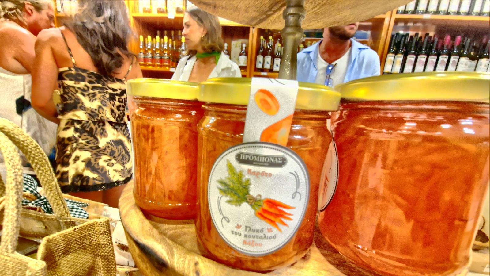 Będąc na lokalnych targach czy w małych sklepach w Chorze, warto również posmakować i zabrać ze sobą domowe przetwory owocowe – konfitura z marchewki, chipsy z naksijskich ziemniaków, dżem z fig, marynowane warzywa. Można także kupić tradycyjne wypieki, takie jak melomakarona czy baklava. Są one nie tylko pyszne, ale i będą doskonałą pamiątką przypominającą w jesienne i zimowe wieczory o kulturze kulinarnej Naxos i naszych cykladzkich wakacjach.