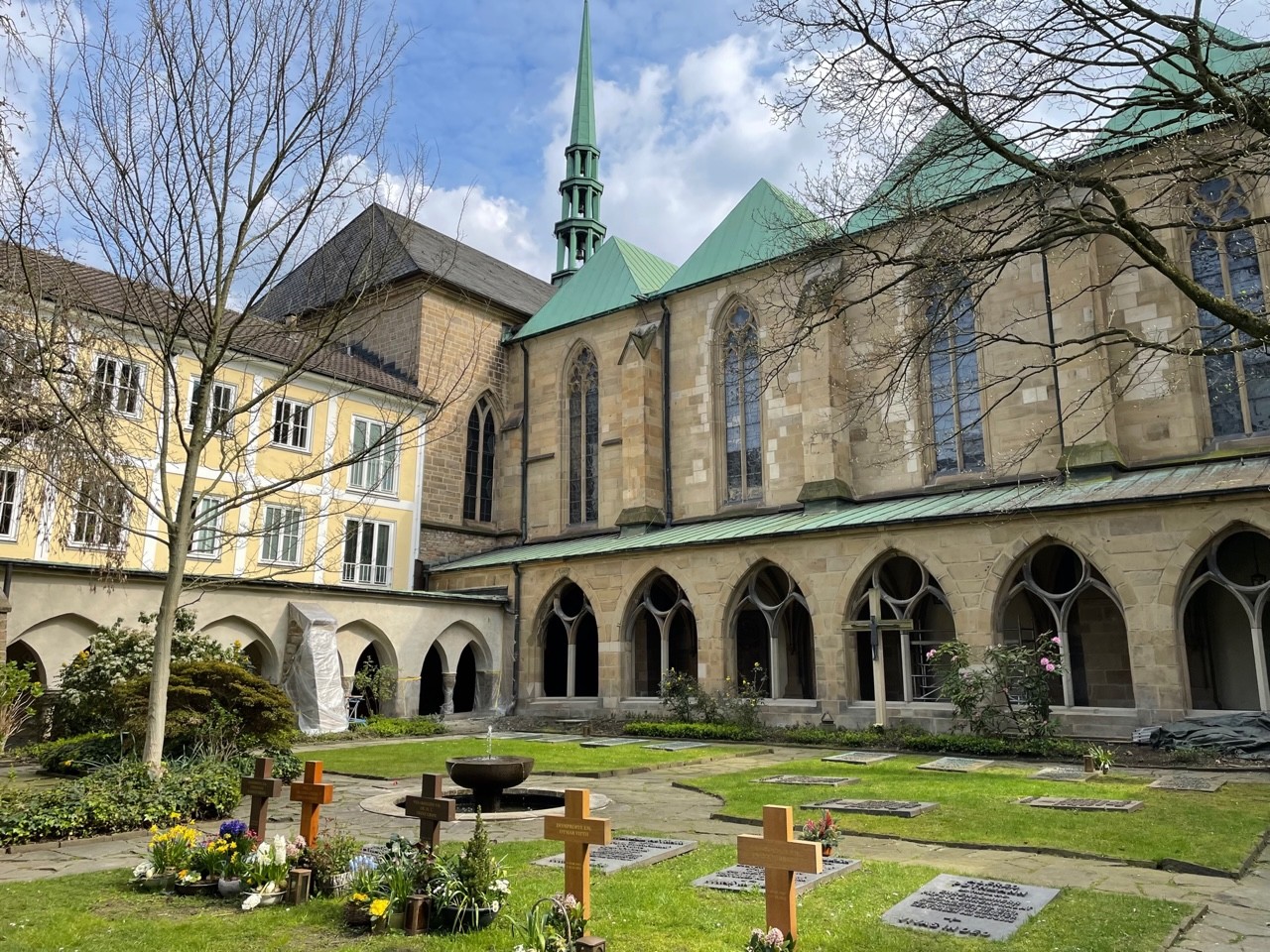Z powodu dwóch pożarów (946 r. i 1271 r.), obecny kompleks łączy styl romański i wczesnego gotyku z barokowym wystrojem. W jego skład oprócz katedry (od 1958 r. siedziba biskupstwa rzymskokatolickiego dla Zagłębia Ruhry), wchodzą: kościół św. Jana, skarbiec i zabudowania klasztorne. Zabytek cenny dla turystów ze względu na jego walory architektoniczne i wyjątkowe zbiory rękodzieła z czasów cesarskiej dynastii Ottonów.