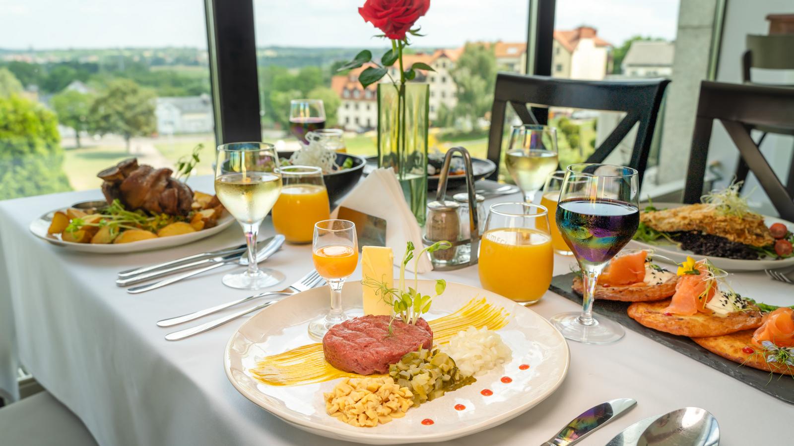 Serce hotelu stanowi restauracja Polonez, znana w Łomży i okolicach z doskonałej kuchni polskiej oraz regionalnej, opartej na świeżych, lokalnych, ekologicznych  produktach. Menu łączy tradycyjne polskie smaki z nowoczesnymi akcentami, a goście cenią sobie tak rodzinne obiady jak i eleganckie kolacje, jednocześnie podziwiając panoramiczne widoki na dolinę Narwi – z eleganckiej sali restauracyjnej, a także przyległego tarasu. Restauracja Polonez od lat jest miejscem spotkań łomżan i podróżnych – zarówno podczas codziennych posiłków, jak i przyjęć okolicznościowych, bankietów czy bali sylwestrowych.