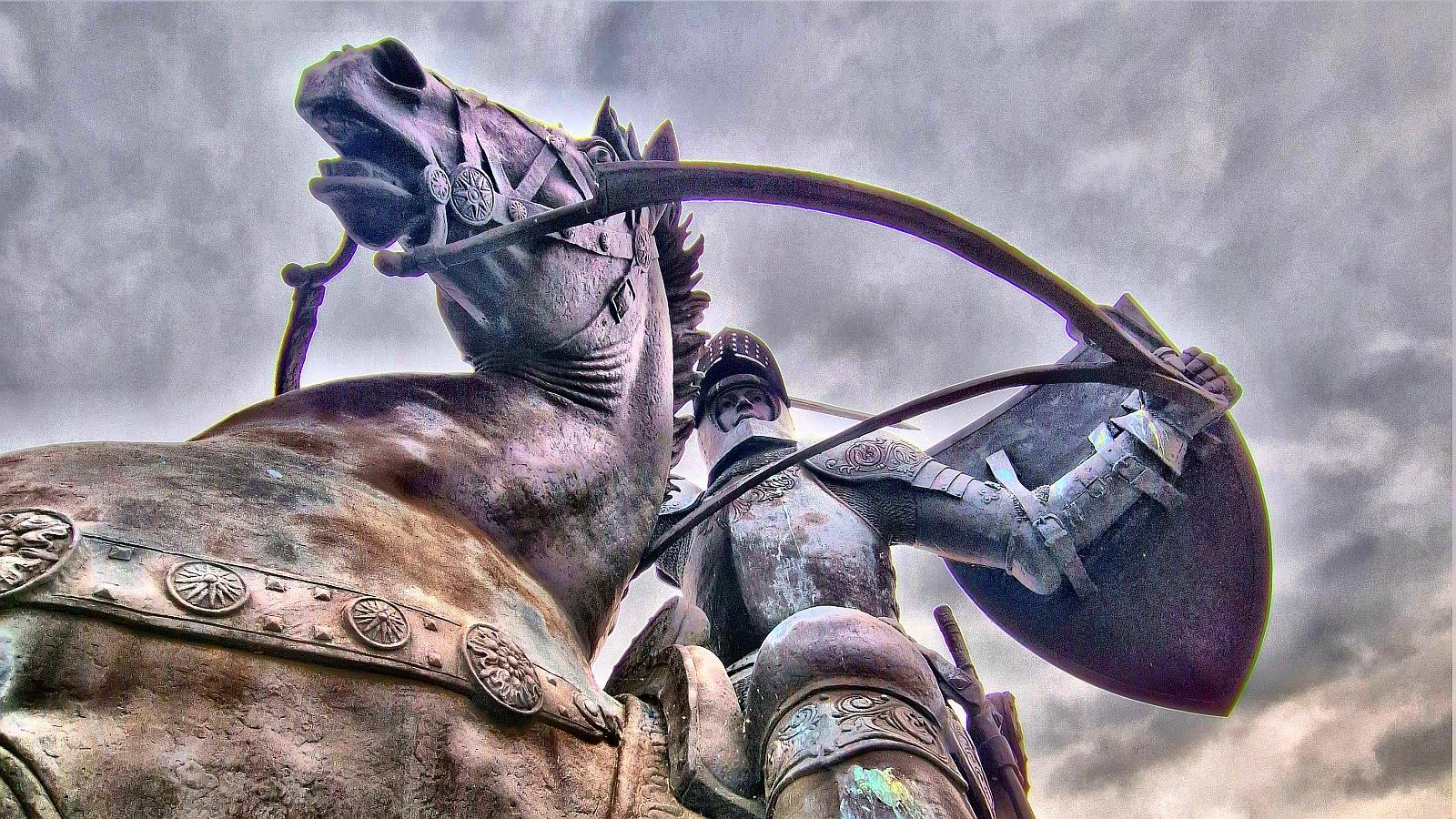 Twarz rycerza to nie rekonstrukcja średniowiecznego wojownika, lecz realistyczne odwzorowanie postaci Romasa Kalanty – studenta, który 14 maja 1972 roku dokonał samospalenia w geście protestu przeciwko okupacji Litwy przez Związek Radziecki. Jego śmierć wywołała falę młodzieżowych demonstracji i stała się symbolem walki o wolność. Twarz Kalanty przypomina, że bohaterstwo ma różne oblicza – nie tylko to w zbroi.