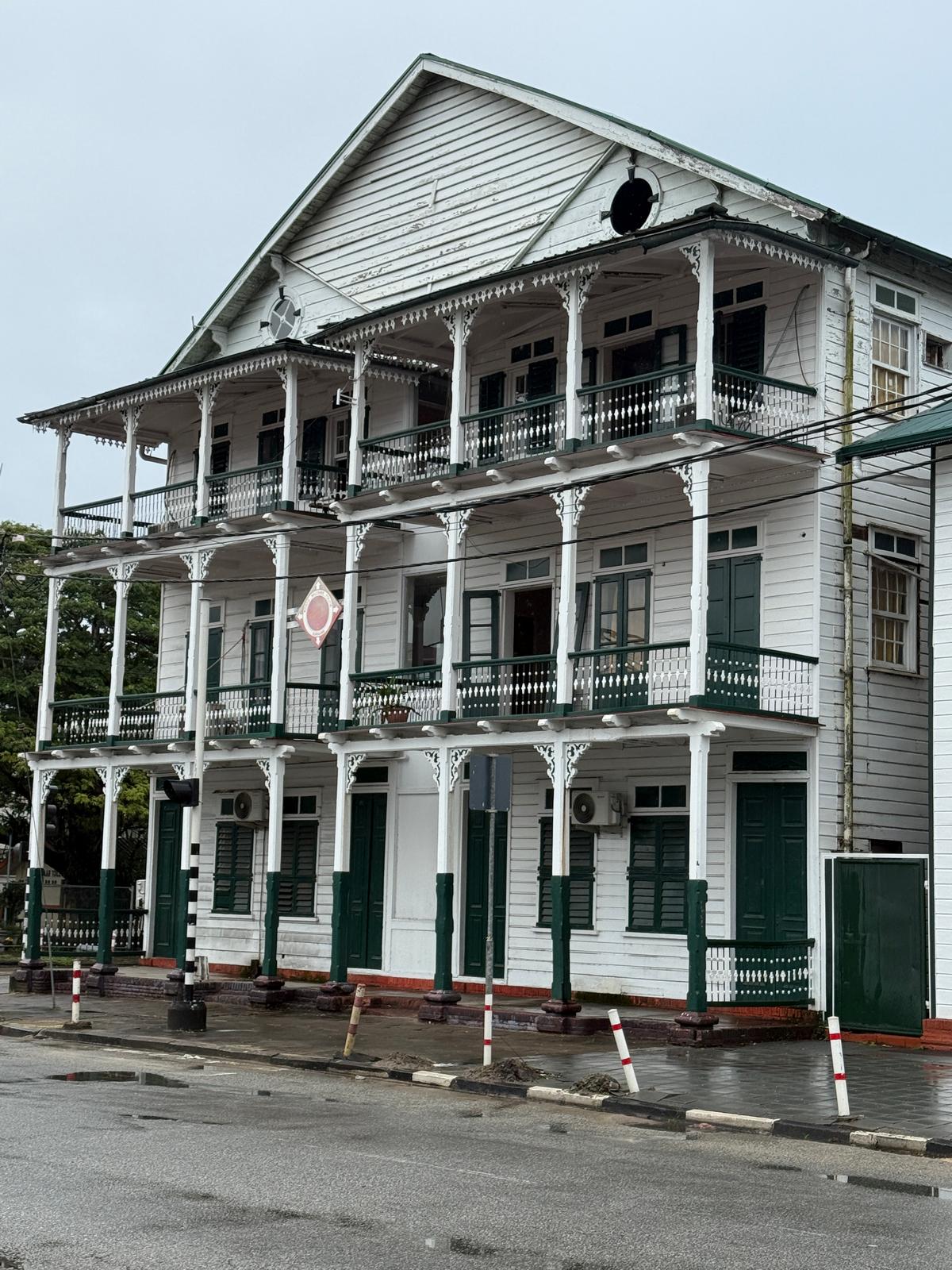 Charakterystyczną cechą tych kamienic jest ich jednolity, symetryczny układ, z prostymi, białymi elewacjami, wysokimi dachami i przestronnymi werandami. Wykonane głównie z drewna, budynki te łączą wpływy europejskie z lokalnymi technikami budowlanymi, tworząc unikalny styl, który odzwierciedla fuzję kultur i tradycji. Większość z nich, między innymi mój hostel Albergo Alberga, znajduje się w obrębie historycznego centrum Paramaribo, które zostało wpisane na Listę Światowego Dziedzictwa UNESCO. Obszar ten obejmuje m.in. Fort Zeelandia, oddalony 300 metrów od mojego noclegu Pałac Prezydencki oraz inne ważne budowle, które razem tworzą spójną i autentyczną przestrzeń miejską. Można tak zagubić się w spacerach i wyobrażaniu sobie, jak żyli 150 lat temu w nich ludzie.