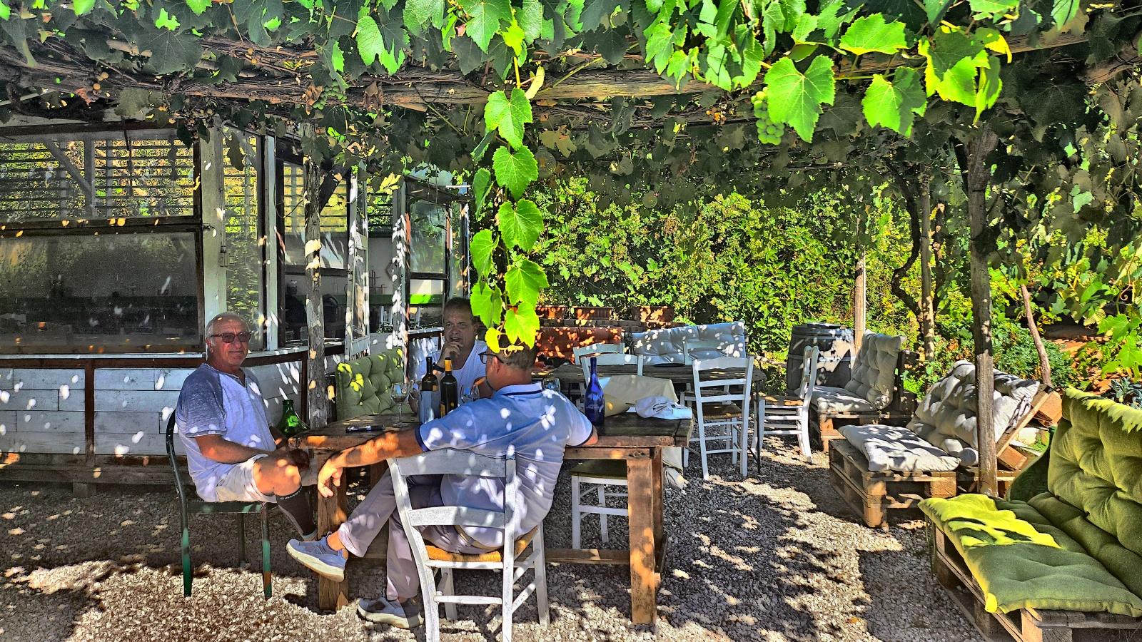 Kiedy dotarliśmy na miejsce, bracia Emilio i Nicola Mirabella właściciele winnicy, przywitali nas serdecznie, mimo że byli zajęci pracą – właśnie przetwarzali świeżo zebrane winogrona. Ugościli nas przy dużym stole, pod pergolą z winorośli. Nicola Mirabella, wskazał na kiście białych winogron i z uśmiechem powiedział: „To Fragolina. Spróbujcie!”. Okazało się, że owoce miały lekko truskawkowy posmak, co tłumaczyło nazwę. To lokalna odmiana winorośli, naprawdę rzadko spotykana. Rozmawialiśmy o winie, jedzeniu i historii, a bracia Mirabella wyraźnie byli dumni ze swojej ziemi i tradycji.