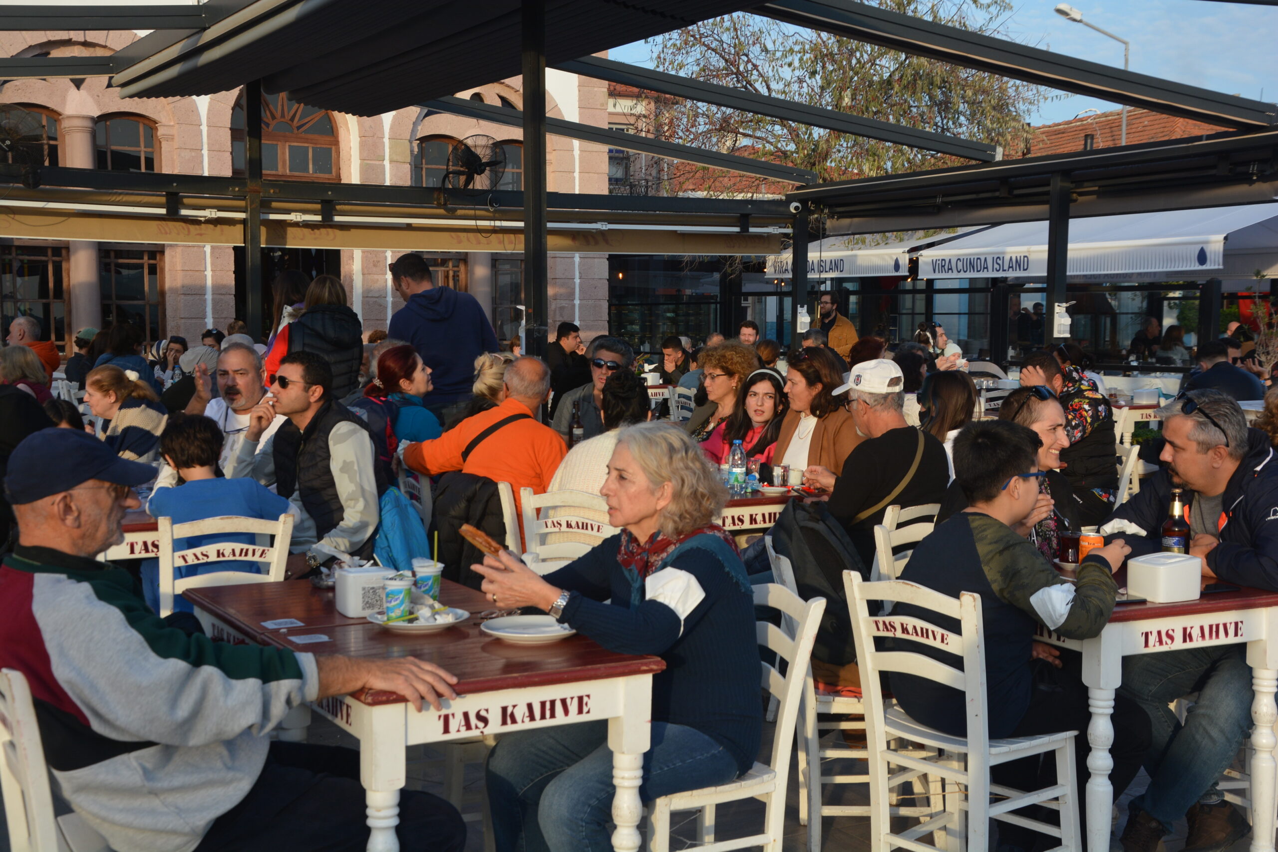 Port i nadmorska promenada na Cundzie są nie tylko ulubionymi miejscami spacerów turystów. Mieszczą się tu również tawerny i kawiarnie, w których można miło spędzić czas przy tureckiej kawie lub lampce lokalnego wina. Chętnie odwiedzają je nie tylko turyści, ale także mieszkańcy wyspy. Większość gości, korzystając z ciepłego klimatu, wybiera stoliki w letnich ogródkach, z których doskonale można obserwować to, co dzieje się w porcie i na promenadzie.