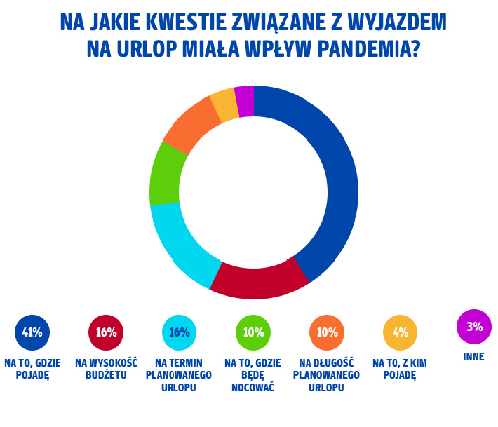 Koronawirus dotknął niemal wszystkich dziedzin życia i zdecydowanie zmienił naszą codzienność. Dotyczy to również wakacji. Tak wskazało 45 proc. ankietowanych. 41 proc. z tej grupy respondentów przyznało, że z powodu pandemii musiało wybrać inny cel podróży, a po 16 proc. osób biorących udział w badaniu albo zmieniło wysokość budżetu przeznaczonego na urlop, albo po prostu jego termin.