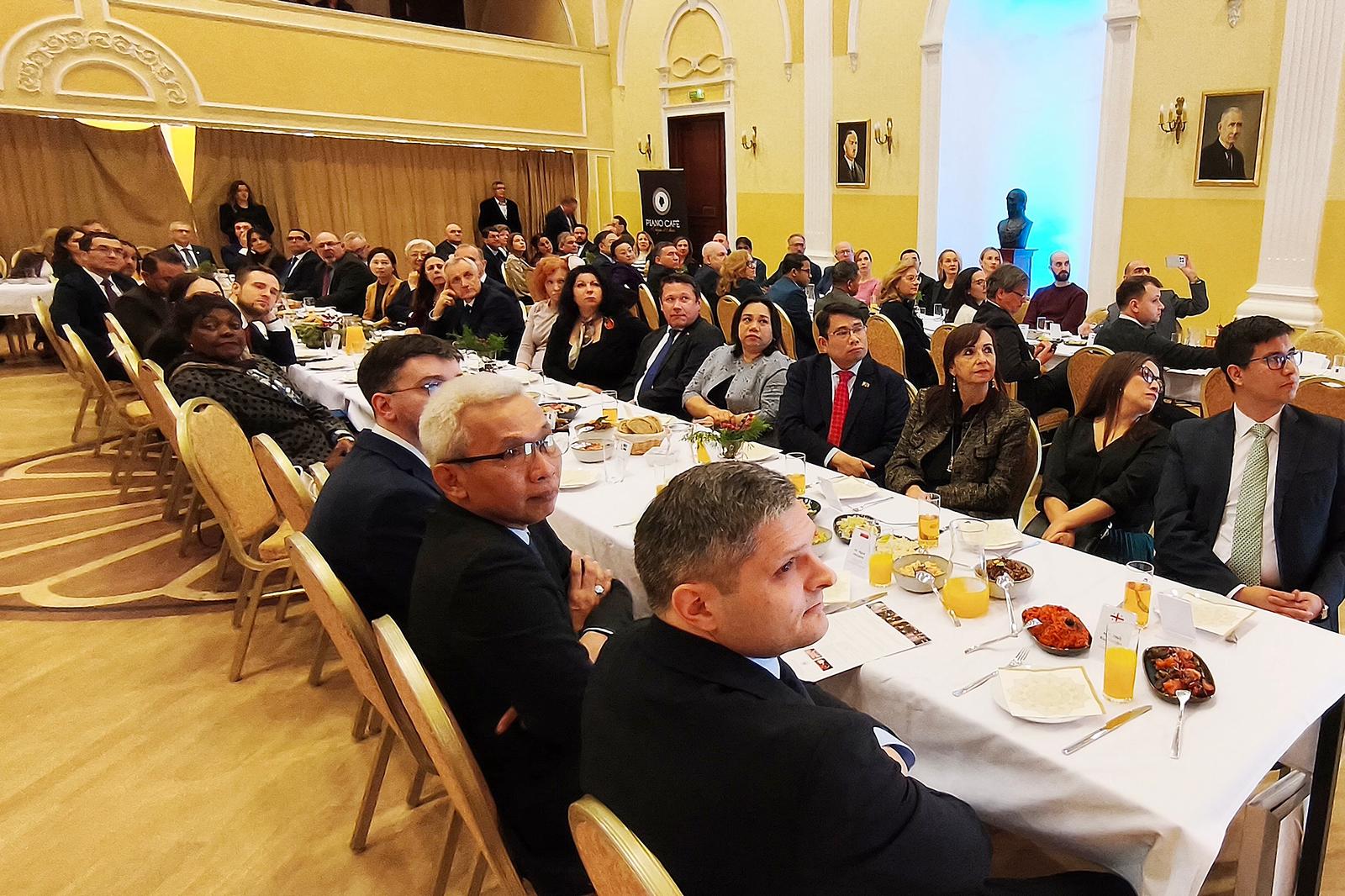 Spotkanie Noworoczne połączone z tradycyjną Wieczerzą Wigilijną zgromadziło blisko 80 ambasadorów, charge d’affaires i dyplomatów. Stronę polska reprezentowali: Ireneusz Raś Sekretarz, Stanu w Ministerstwie Sportu i Turystyki, Adam Nowak, Podsekretarz Stanu w Ministerstwie Rolnictwa i Rozwoju Wsi oraz Małgorzata Wilk-Grzywna, wiceprezes Polskiej Organizacji Turystycznej. Dzięki tak znamienitym gościom spotkanie stało się unikalną platformą promocji Polski poprzez to, co mamy najcenniejsze – naszą kulturę, gościnność i wybitną kuchnię.