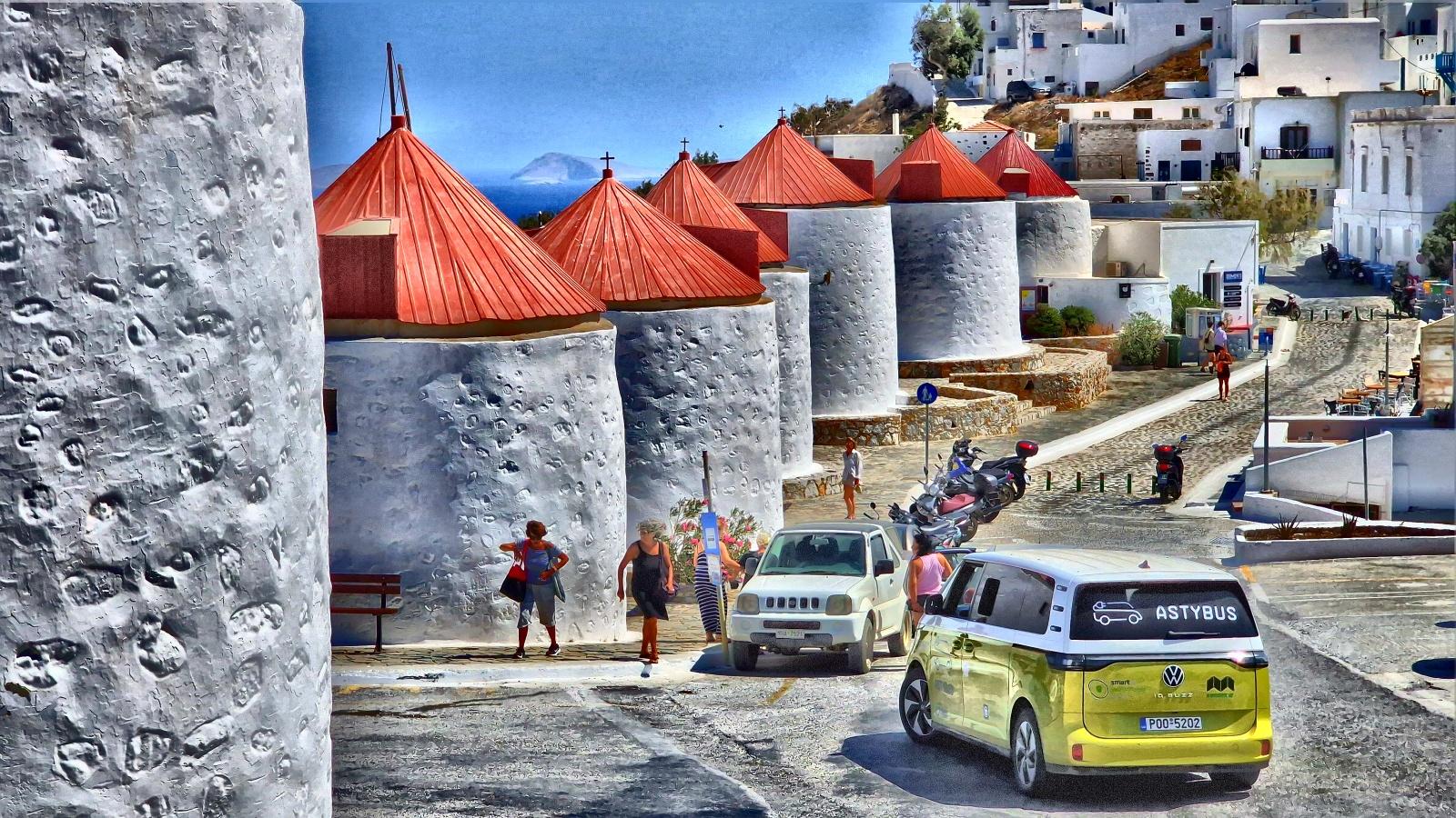 Do 2026 roku sieć ładowarek dla aut elektrycznych wzrosła do ponad 20 punktów, a wypożyczalnie oferują ID.Buzz i inne modele VW. Pozwala to mieszkańcom i turystom poruszać się po wyspie w ekologiczny sposób. Samochody elektryczne radzą sobie całkiem nieźle na szutrowych, stromych drogach z zakrętami, jakich nie brakuje na Aastypalei. Sami jeździliśmy takim samochodem elektrycznym bez przeszkód.