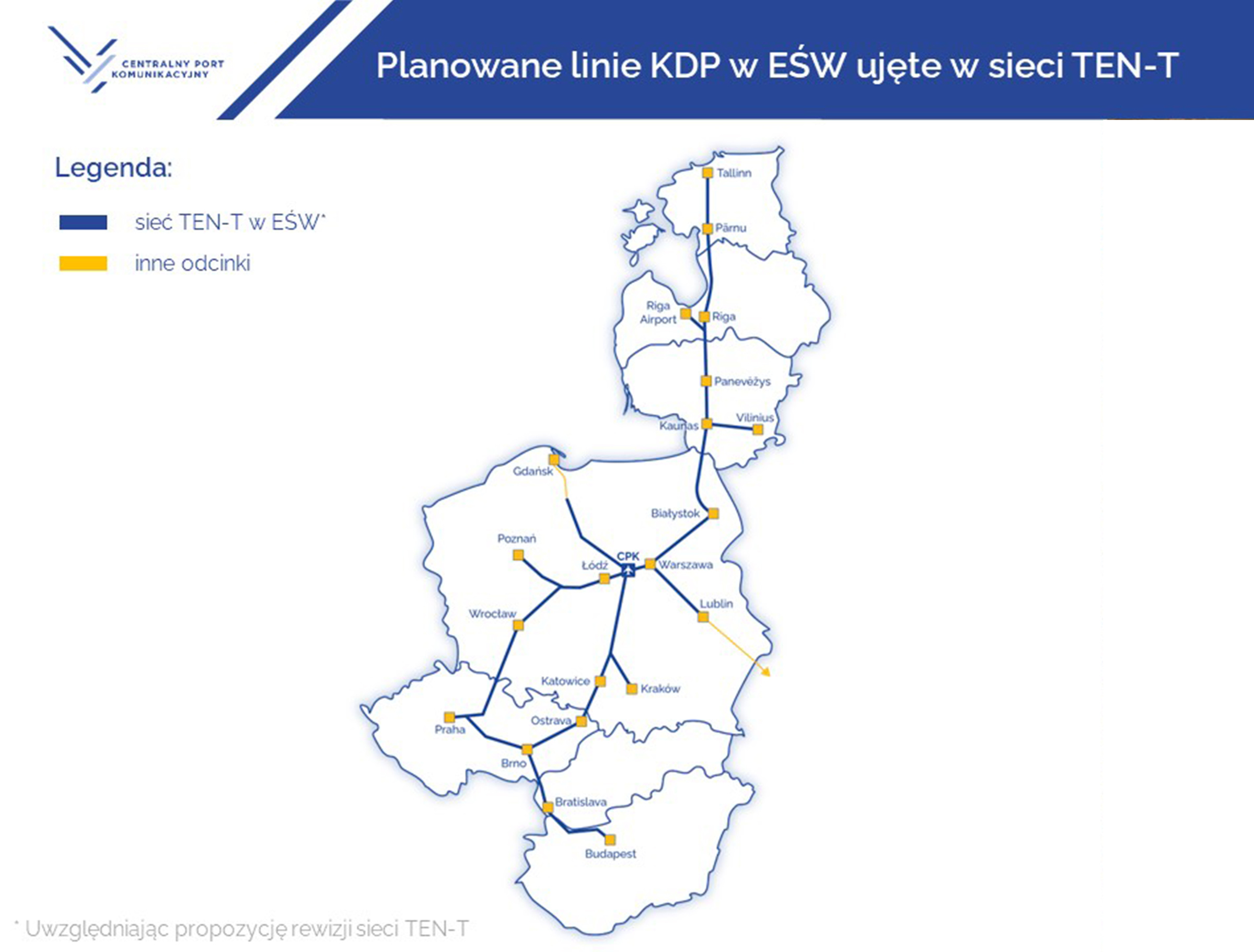 Transeuropejska Sieć Transportowa TEN-T jest instrumentem służącym koordynacji i zapewnieniu spójności i komplementarności inwestycji infrastrukturalnych w Europie. W wyniku zakończonej w 2013 roku rewizji wytycznych dla sieci TEN-T, ustalono jej nowy układ na terytorium państw członkowskich UE. Uwzględniono w nim m.in. przygotowywaną przez CPK linię Kolei Dużych Prędkości WarszawaŁódź-Poznań/Wrocław, popularnie zwaną „igrekiem”.