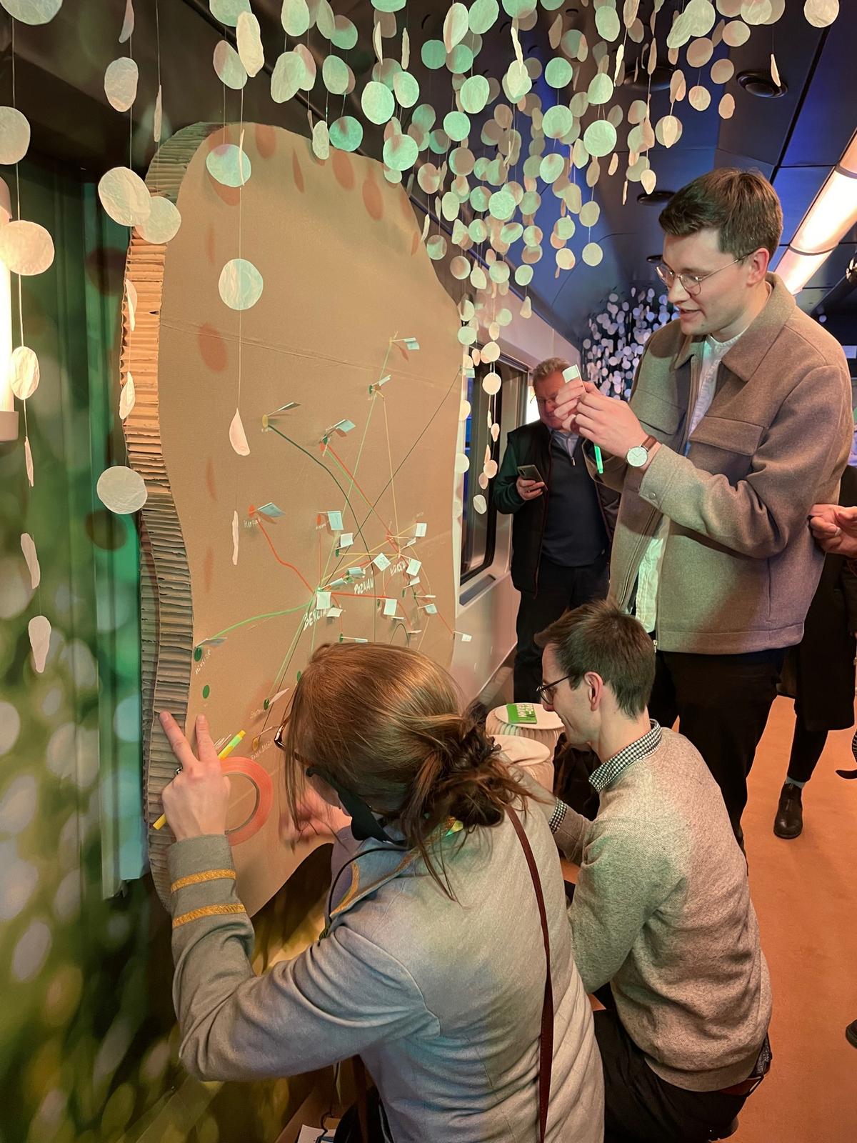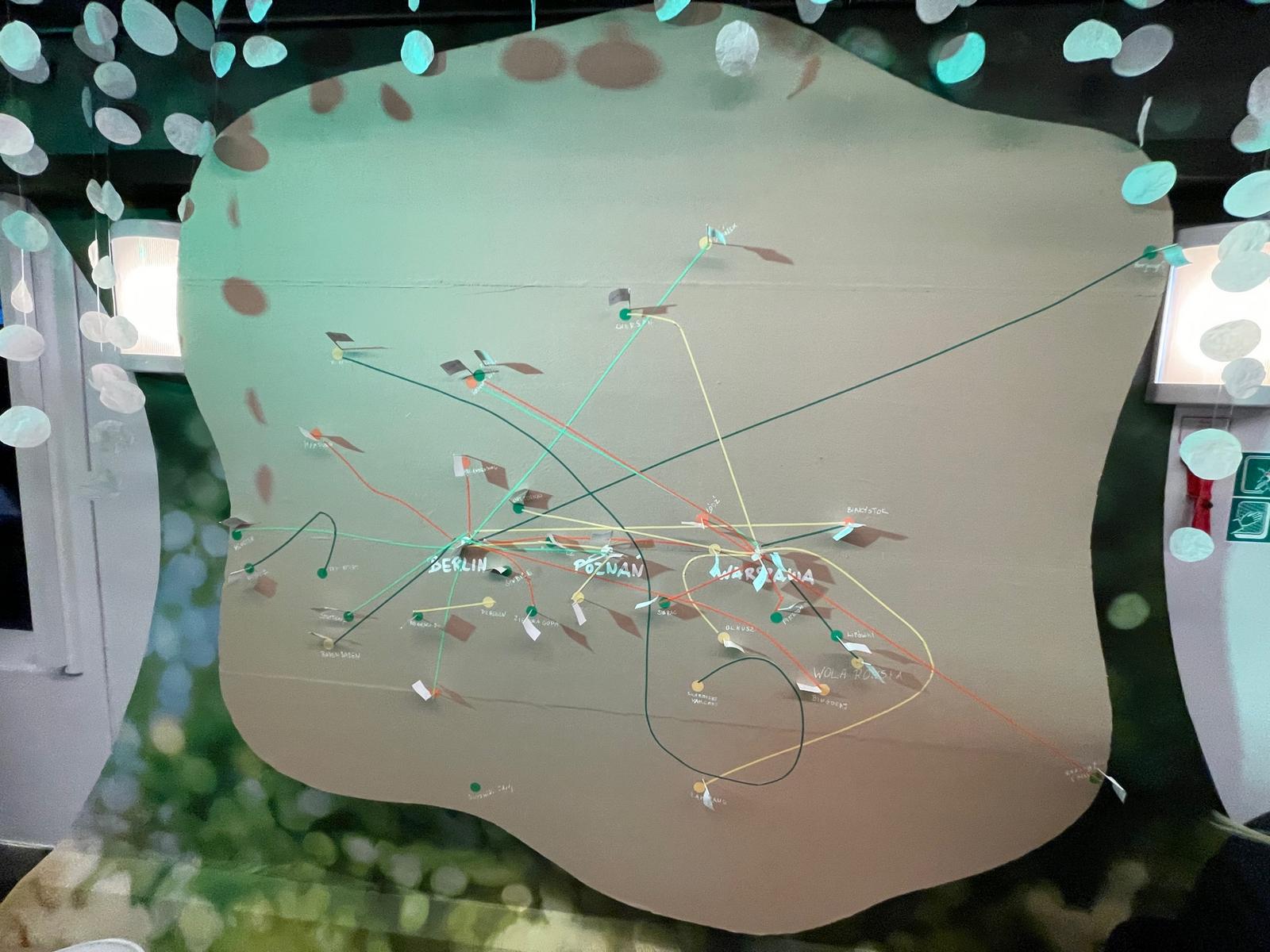 Następna animacja polegała na zaznaczeniu przez pasażerów na dużej mapie, z linią kolejową Warszawa-Poznań-Berlin, miejsc swojego urodzenia oraz obecnego adresu. Były one łączone nitką. Patrząc na mapę pod koniec jazdy pociągu można było wysnuć wniosek, że większość uczestników tego quizu osiedliła się daleko od pierwotnego zamieszkania.