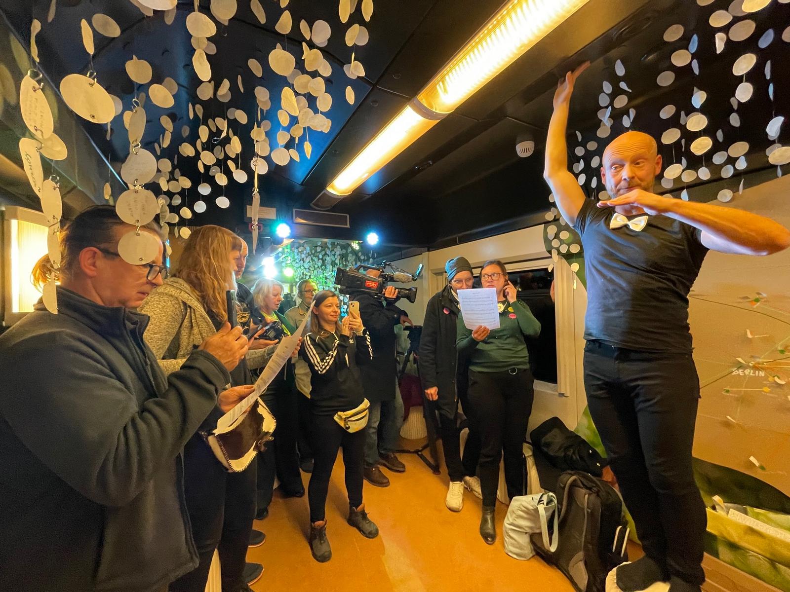 Pierwszy pociąg ruszył z Dworca Centralnego w Warszawie w dniu 11. lutego o godzinie 17.00. Każdy z pasażerów mógł uczestniczyć w przeżyciach artystycznych bez ponoszenia dodatkowych kosztów, wystarczył bilet na przejazd. Było również wśród nich dziesięciu przedstawicieli mediów pod opieką Agnieszki Zawadzkiej z biura Visit Berlin, organizatora wyjazdu.