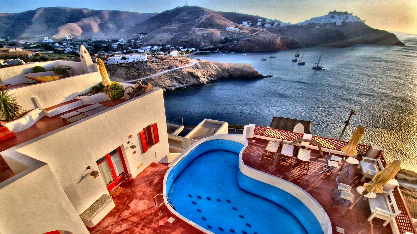 Poranki pachną kawą i morzem, gdy słońce odbija się od wody. Wieczorem basen mieni się światłami. W tle zapala się Chora. Pojedyncze punkty świetlne na białych domach tworzą magiczną mozaikę.